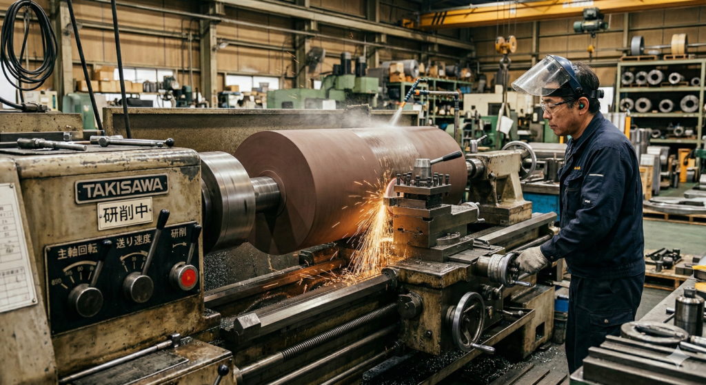 トマト工業が使ってるゴムロールは全部で5本、これが定期的に再研磨にだしています。