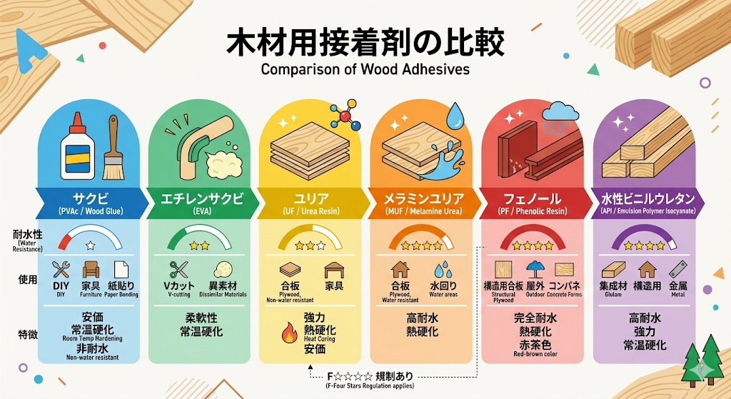 特類耐水合板につかわれている接着剤。