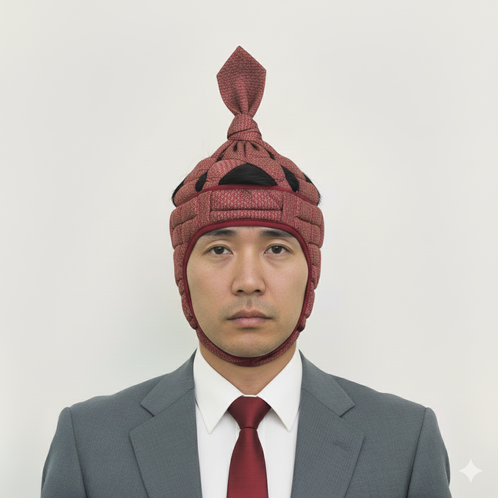 隻眼の軍師、山本勘助をイメージした巻き方であり、